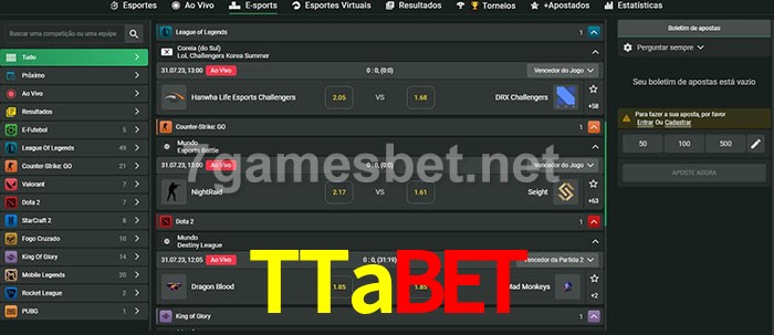 O TTabet oferece uma grande seleção de opções de apostas em e-sports com probabilidades competitivas